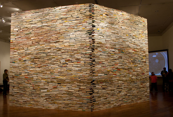 I just saw this. I loved the stacked book sculpture; it was a sight to behold. I want to do some of my own rubbings of it.